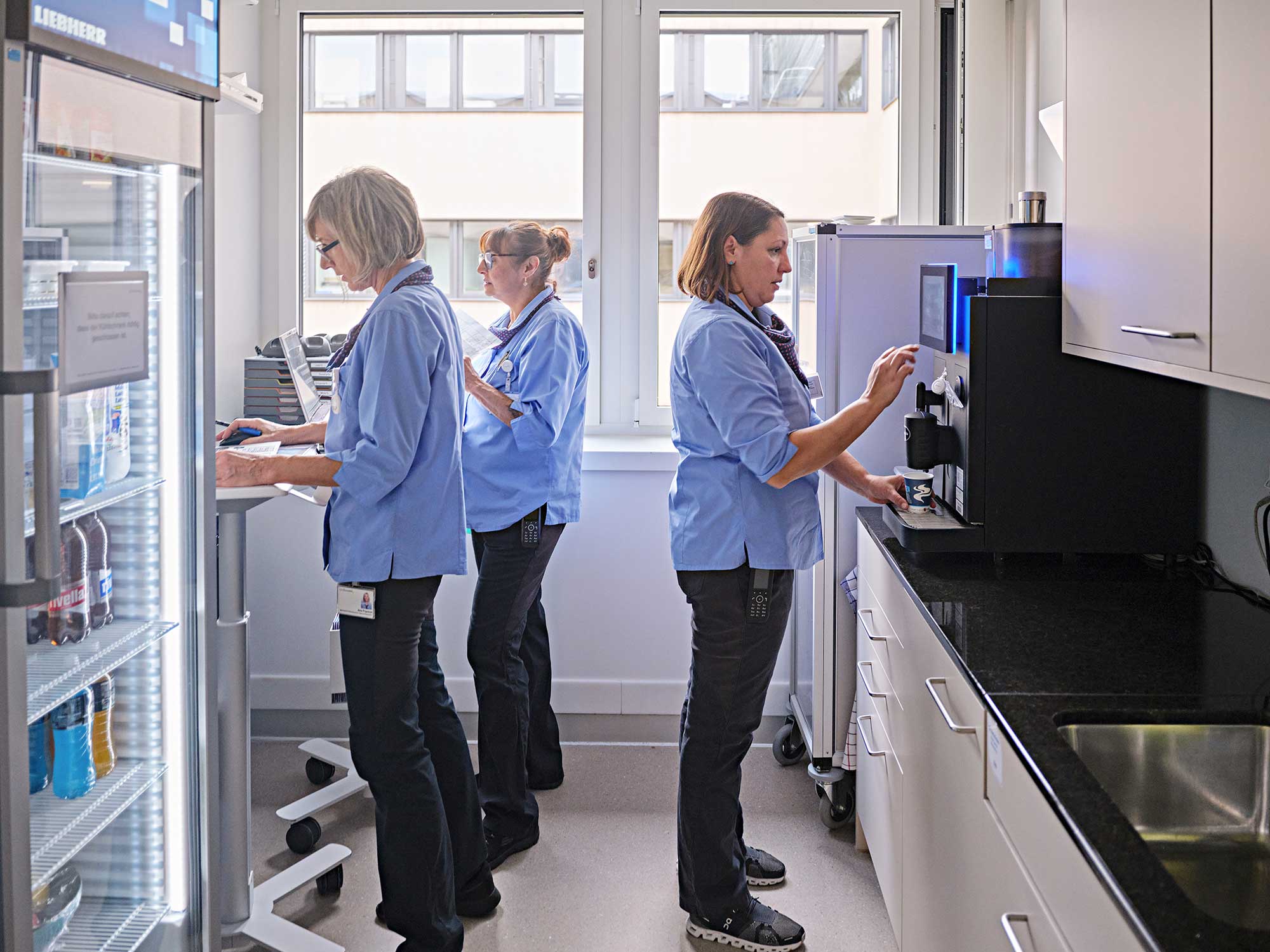 Wasserflaschen sind bereitgestellt, der Tee ist aufgefüllt, hier und dort vermittelt ein Strauss Blumen Zuversicht und ein wenig Fröhlichkeit. «Es sind häufig Kleinigkeiten, die ein positives Ambiente insgesamt ausmachen», führt Peggy Meixner aus, «ein paar Blumen hier, ein schön angerichtetes Dessert dort – sicher aber auch ein offenes Ohr, ein ehrlich gemeinter Zuspruch oder ein freundliches Lächeln unsererseits.» Gerade das Letztgenannte ist ihr immens wichtig. Denn: «Schliesslich sind wir vom Patientenservice meist die Ersten, die eine Patientin oder ein Patient zu Gesicht bekommt.»