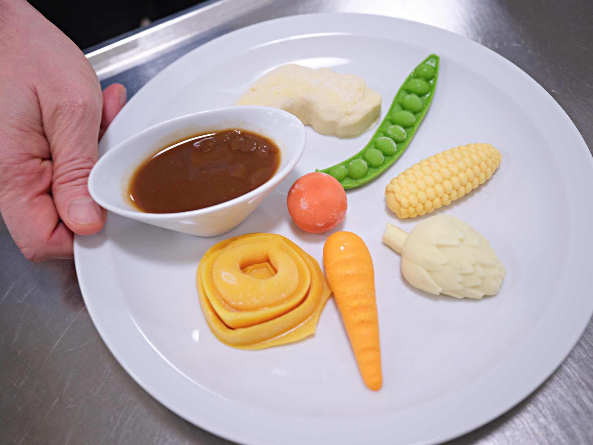 Die ursprünglichen Lebensmittel werden sämig püriert, passiert und danach so geformt, dass sie den Ursprungsprodukten möglichst ähneln, zum Beispiel Pouletschenkeln, Karotten oder Erbsenschoten.